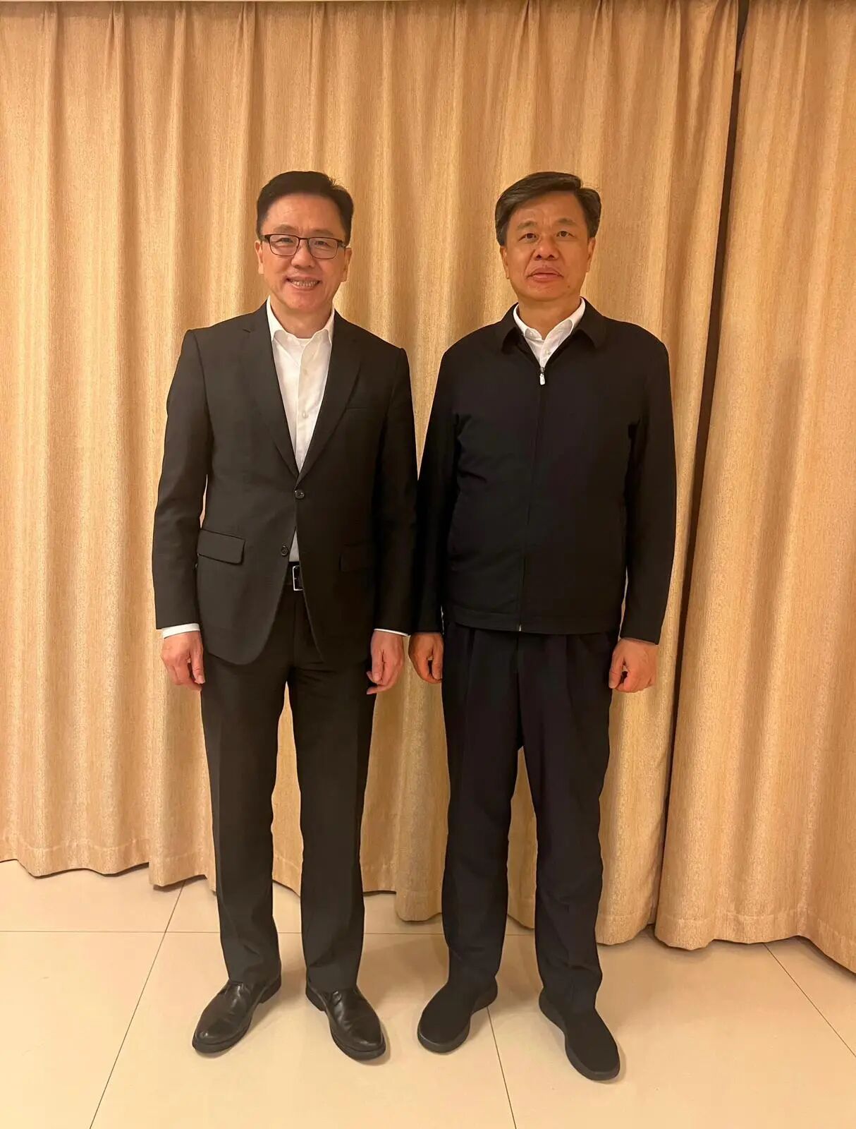 创新科技及工业局局长孙东教授(左)在广西拜会广西壮族自治区党委书记、自治区人大常委会主任陈刚(右),了解广西正加快推动人工智能高质量发展,并建设面向东南亚国家联盟的人工智能国际合作高地。